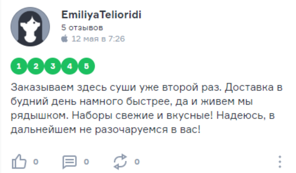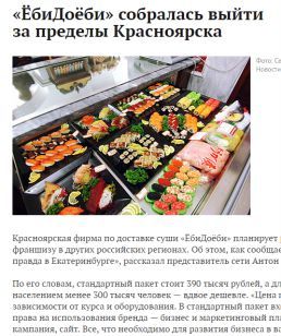 Наиболее популярный формат сети заведений суши. Локацию под данный формат необязательно рассматривать с пешеходным трафиком, что даёт преимущество по отношению к другим форматам и ускоряет процесс поиска места.